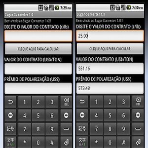 Permite calcular o preço do contrato de açúcar negociado na bolsa de Nova York (ICE), considerando o prêmio de polarização.What's new in Sugar Converter 1.0