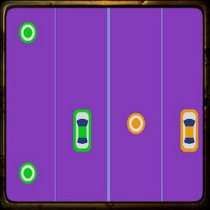 Control at the same time the red car and the blue car and avoid the squares on the road and Eat up all the circles .