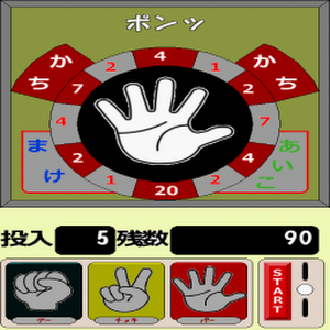 A game which collects the medal by using as a computer "janken" which is time-tested play from ancient times and which was in the mom-and-pop candy store is reproduced.
